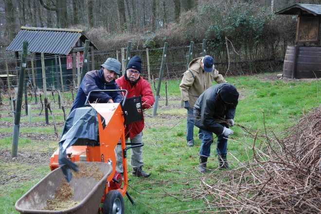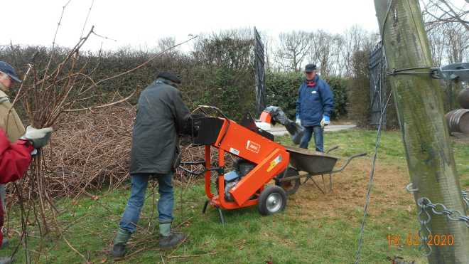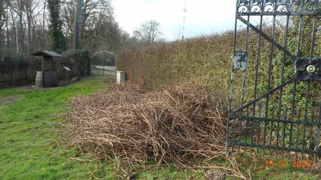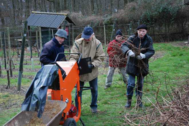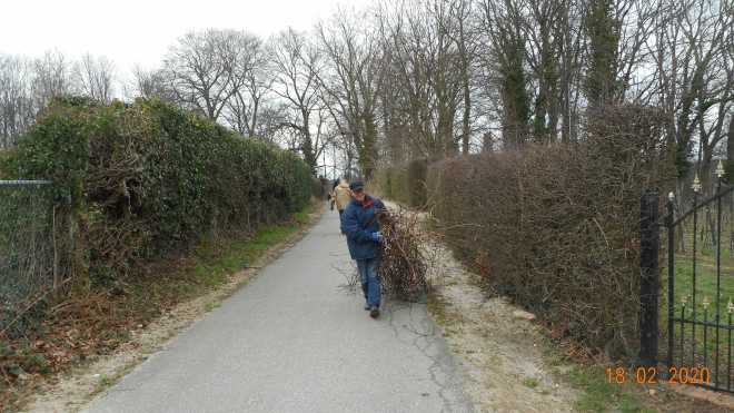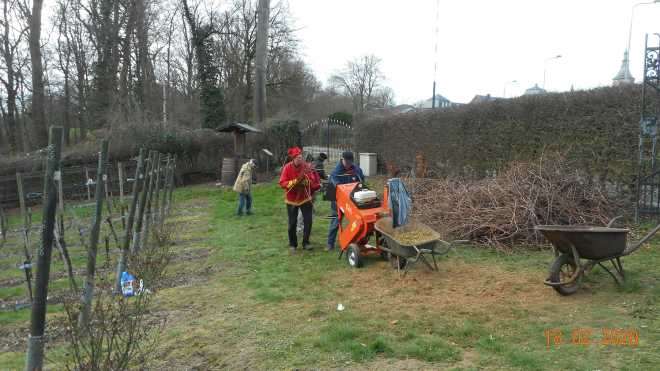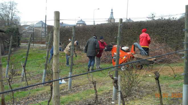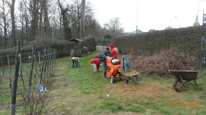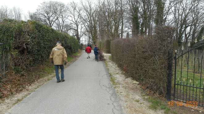 Na het snoeien : Vele handen maken licht werk.