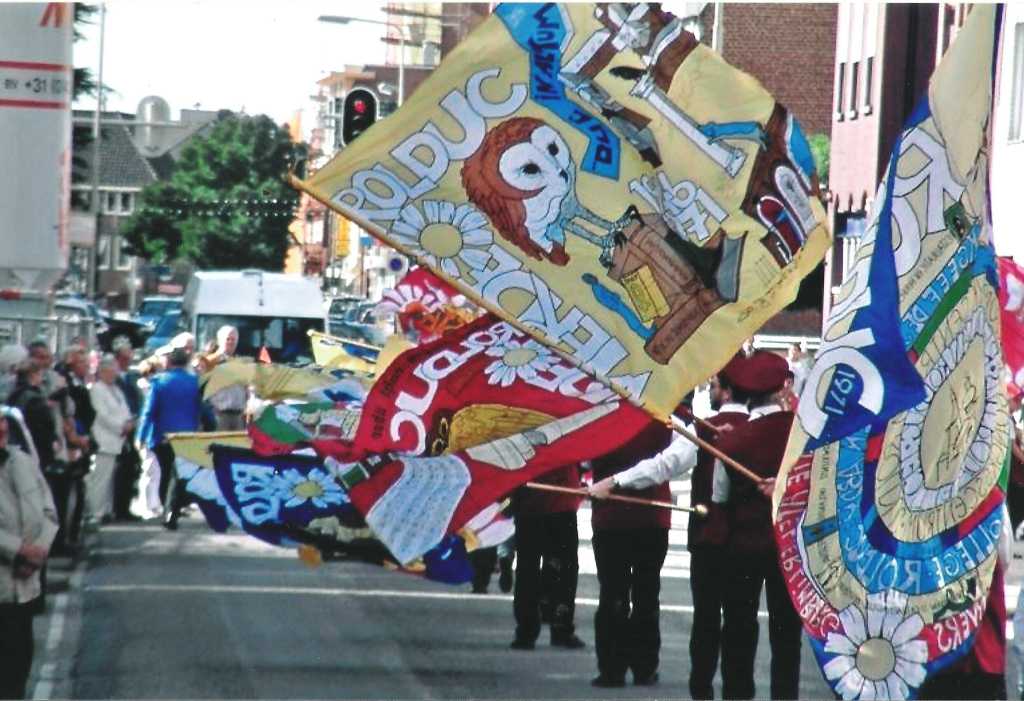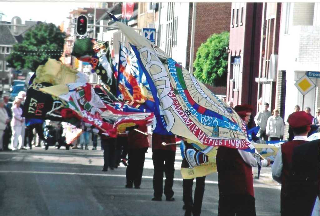 De groep wordt in Herzogenrath ontvangen door de leden van het St.Catharinagilde met de vaandels van Rolduc, Langs de route naar Rolduc staan veel belangstellenden die de bijzondere groep een warm welkom heten.