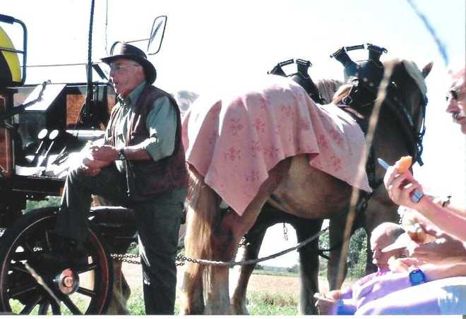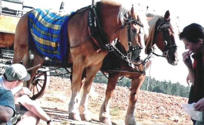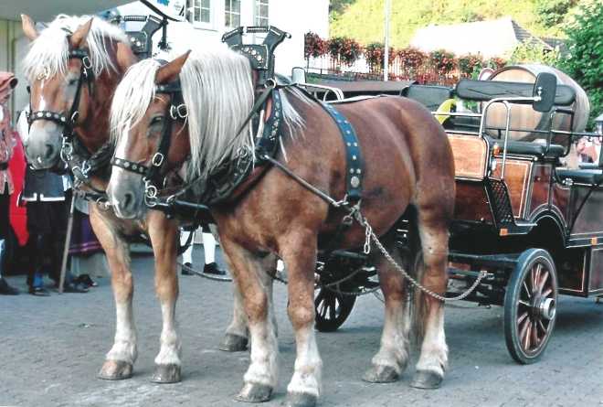 Er is een historische wagen (1500kg) met tweespan van koudbloed raspaarden beschikbaar. De paarden zijn voor deze taak goed getraind en ze kunnen per dag ca. 65 km afleggen.
