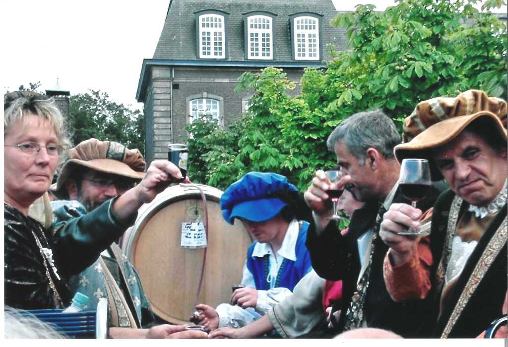 Na verfrissen en omkleden in deze historische kleding gaan de deelnemers, samen met de wijnkoningin op weg via het centrum van Herzogenrath naar Rolduc voor de laatste meters van deze tocht.