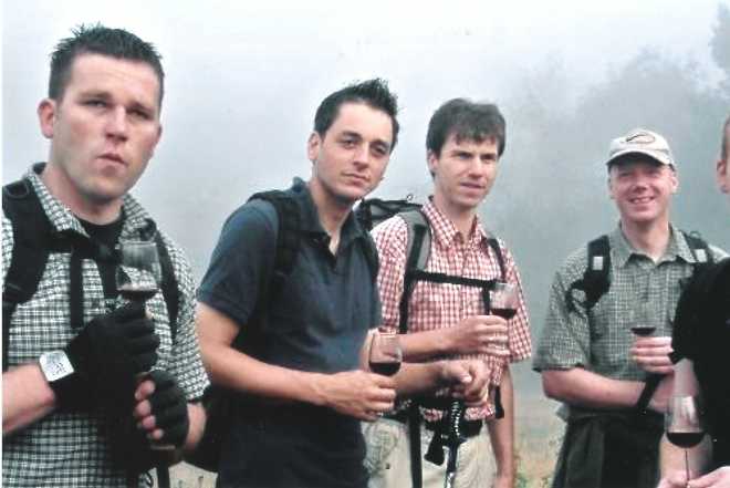 ’s Avonds wordt gebarbecued (met bier). Rudolf Mies biedt een proeverij aan van zes wijnen: Rivaner 2003, Riesling 2003, Portugieser 2003, Domina 2003 en Saffenburger 2002 en 2003 (dit was perfect).
